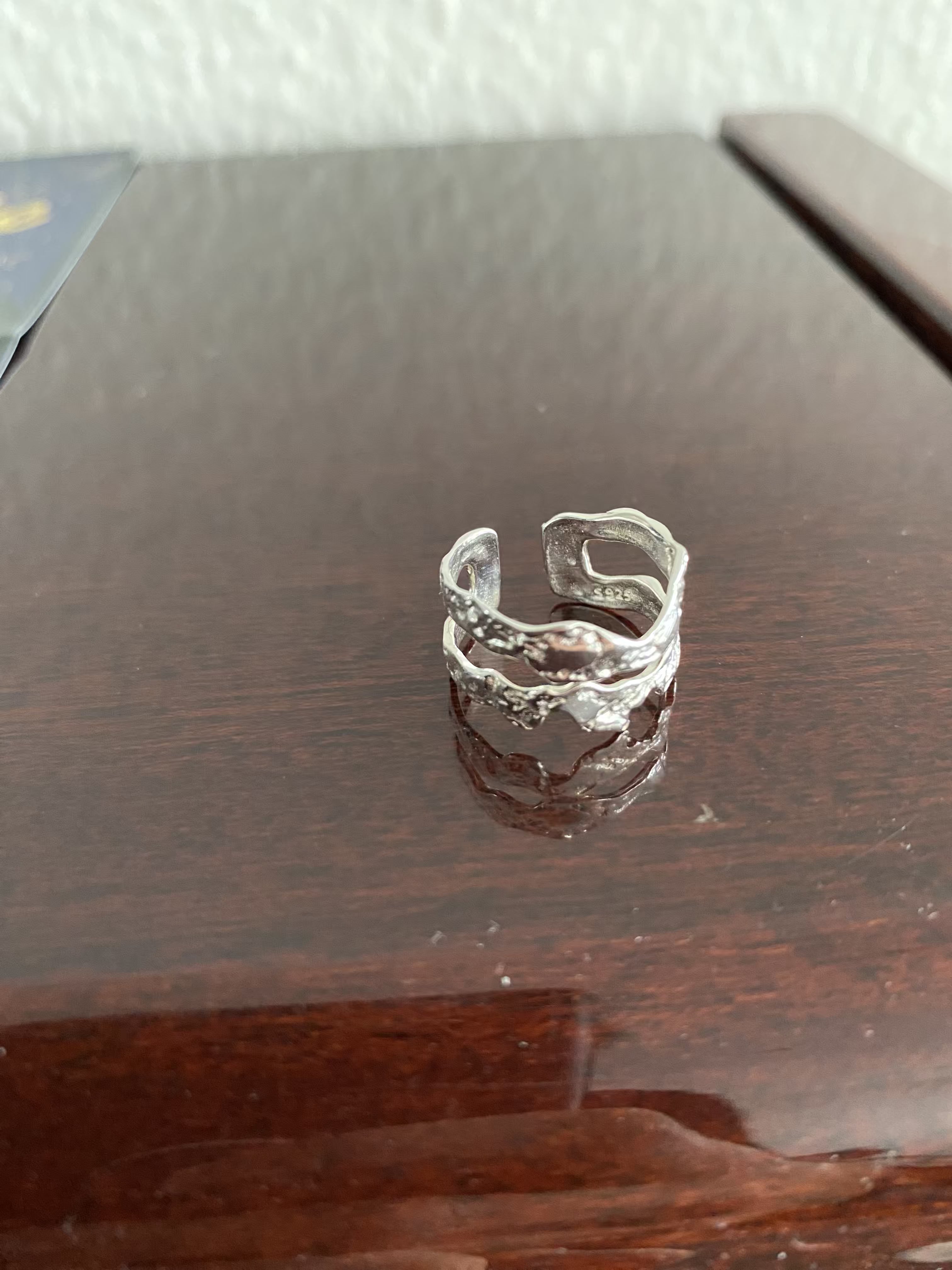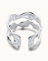 Avec ses deux formes de vagues distinctes et irrégulières, cette bague ajustable célèbre la beauté de l'asymétrie et du mouvement.