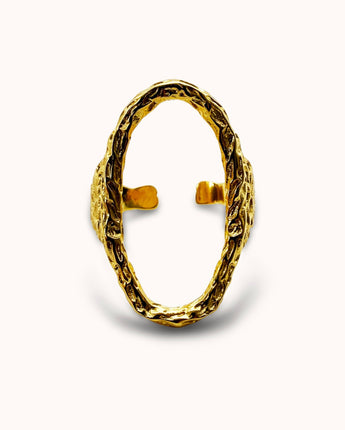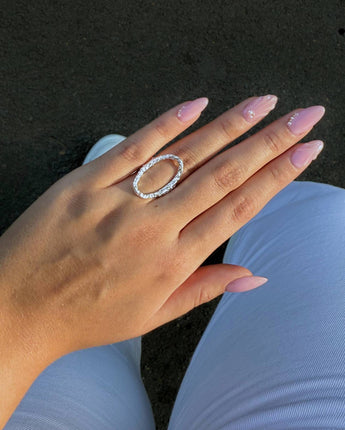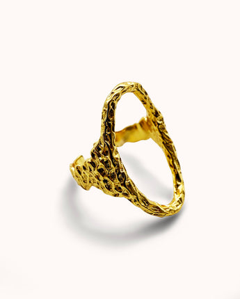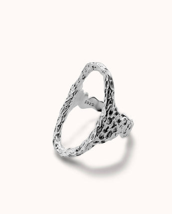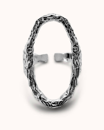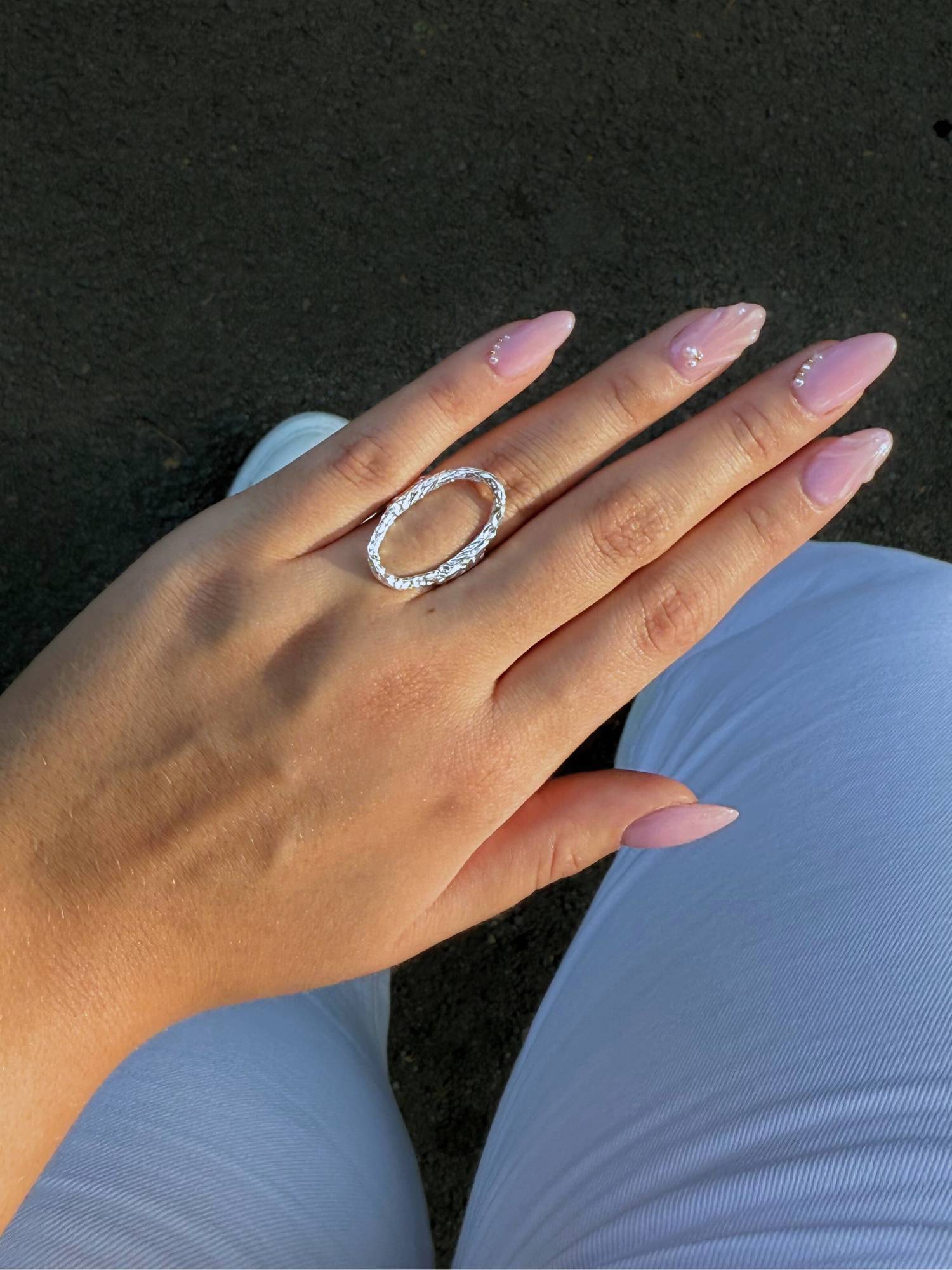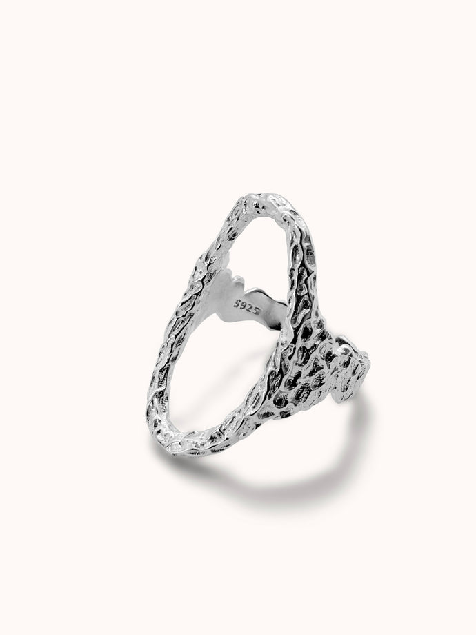 With its open oval shape and irregular texture, the Aura Ring catches the light with every movement.