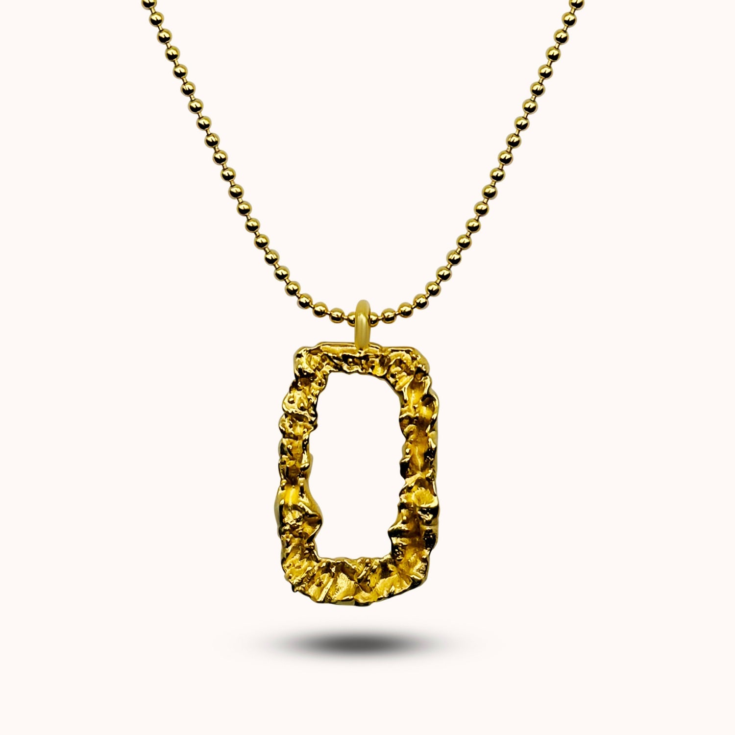 A hammered, intentionally irregular pendant on a fine chain.